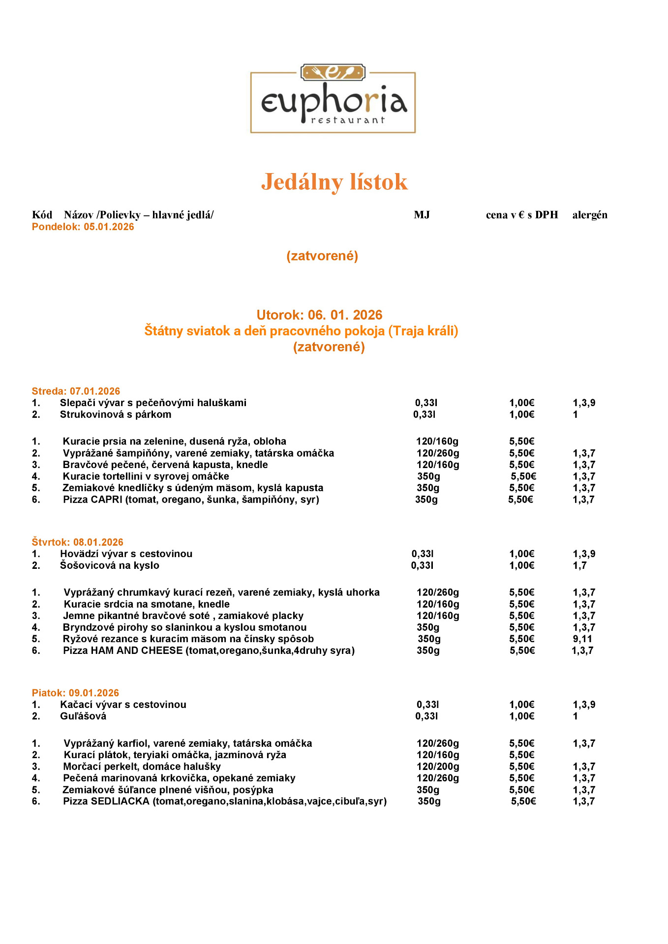 Vitajte v našej reštaurácii Euphoria! Ponúkame bohaté jedlá z kvalitných surovín a široký výber nápojov. Navštívte nás v Prešove Ľuboticiach a doprajte si výnimočný gastronomický zážitok.